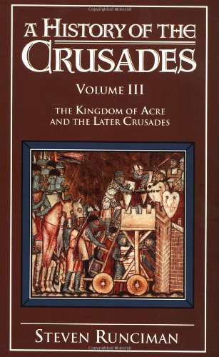 Editorial Reviews: Review ‘I do not know when, in recent years, I have read a book which so enlarged my knowledge of and interest in a period of history … It sets before us one of the formidable moral and romantic epics of our time, with scholarship and imagination worthy of it.’ The Times Literary Supplement’The three volumes ring with battle trumpets and drums, glitter with the splendor of noble parades, and are replete with true stories of bravery and cowardliness, rash daring and wily intrigue … To the specialist (Runicman) offers a wealth of new interpretations … To the layman, he tenders romance and suspense at nearly every page.’ The Yale Review’ … the best scholarly survey of the subject by a single author. It will always remain the first considerable work of its kind in the English language.’ The English Historical Review’One of the grand historical monuments of the twentieth century … Written with imagination and based on immense scholarship, (the volumes) are filled with true stories of rash daring and wily intrigue as the flower of Western knighthood assaults the infidel East for God, gold and glory.’ Washington Post Book World Book Description Sir Steven Runciman examines the revival of the Frankish kingdom till its collapse a century later. Book Description Sir Steven Runciman’s, A History of the Crusades (volume 3), examines the revival of the Frankish kingdom at the time of the Third Crusade until its collapse a century later. This is one of the great classics of English historical writing and a great survey of the time. Read more